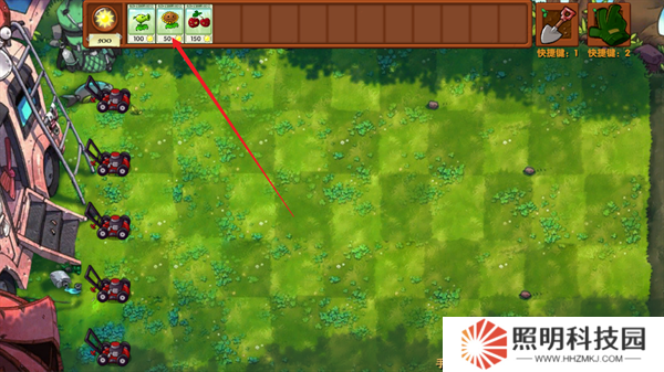 4、進入關卡之后,就要點擊自己的植物卡牌來構建自己的防線。