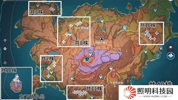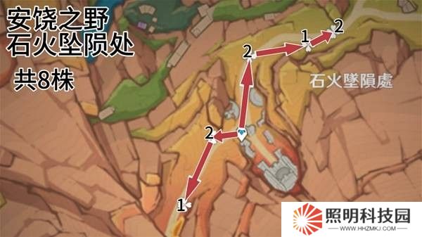 地圖左側(cè)臨海錨點(diǎn),石火墜隕下方(7株)