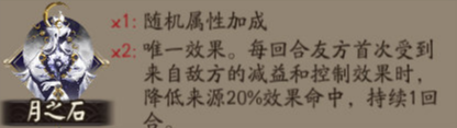 x2:唯一效果。每回合友方首次受到來自敵方的減益和控制效果時,降低來源20%效果命中,持續(xù)1回合。