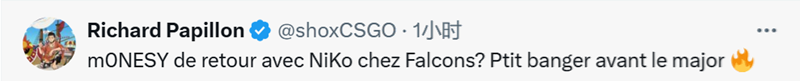 shox:m0NESY要和NiKo一起在Falcons重聚?這可真是在Major前的一個重磅消息啊。