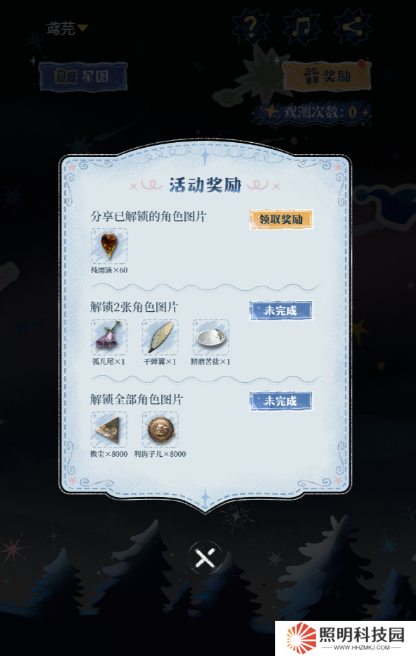活動期間,觀測星空并協(xié)助庫珀花環(huán)完成星圖。完成任務(wù)后,司辰可領(lǐng)取對應(yīng)獎勵。