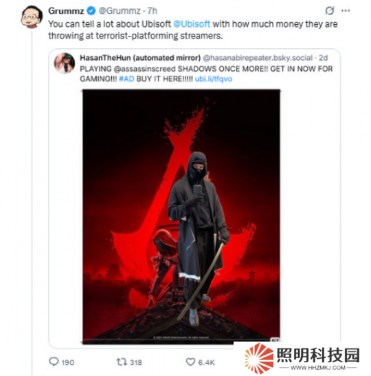 Grummz的推文,針對的就是Hasan在動態(tài)中對《刺客信條:影》的稱贊。對此,他提出了不同意見:“從育碧砸錢支持恐怖分子主播這件事上,你就能看出這家公司很多問題?!?/p>