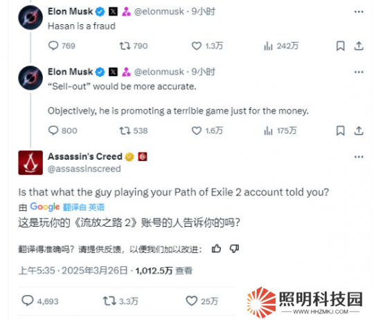 這條推文吸引了許多玩家的關注,其中就包括馬斯克。隨即,他就在評論區(qū)附和了Grummz吐槽Hasan的觀點,并評價《刺客信條:影》是一款“糟糕的游戲”。