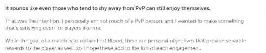 盡管在直面會上只是發(fā)布了預(yù)告片,但這個全新IP的游戲還是吸引了玩家們的熱議。為此,宮崎英高本人在任天堂官方欄目“Creator"s Voice”中,就提到了《黃昏血族》的更多玩法內(nèi)容以及開發(fā)契機(jī)。而在此期間,宮崎英高還自曝了自己其實(shí)并不喜歡PVP游戲。