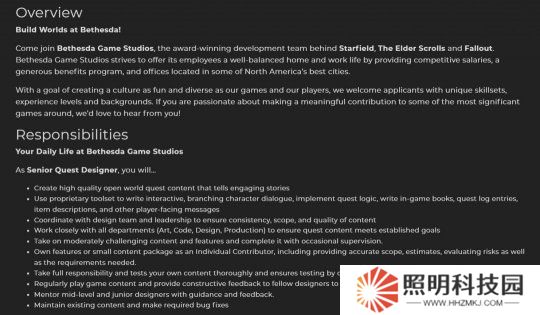最近B社發(fā)布高級任務(wù)設(shè)計師和助理任務(wù)設(shè)計師職位招聘,要求應(yīng)聘者對開放世界游戲很熟悉,擁有開發(fā)3A游戲的經(jīng)驗,最好玩過《上古卷軸5》。他們的工作是使用專有工具創(chuàng)建開放世界內(nèi)容,講述引人入勝的故事和分支對話。