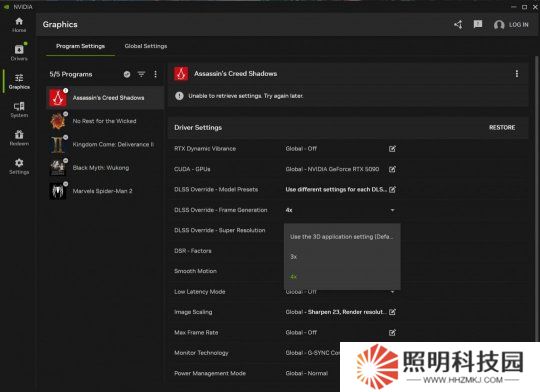 通過英偉達(dá)App,可以開啟3倍或4倍多幀生成。另外還可以受益于最新的Transfomer模型DLSS 4超級分辨率技術(shù)。