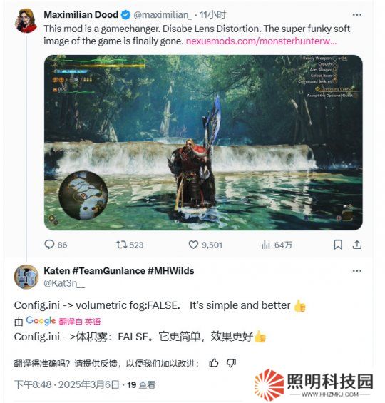 推主@maximilian_分享了一款MOD,可關(guān)閉《怪物獵人:荒野》中的鏡頭失真(Lens Distortion)效果,讓游戲畫(huà)面更清晰。推主表示禁用后“超級(jí)怪異的柔和圖像終于消失了”,這表明原有的鏡頭失真效果可能讓畫(huà)面顯得模糊或不舒適。