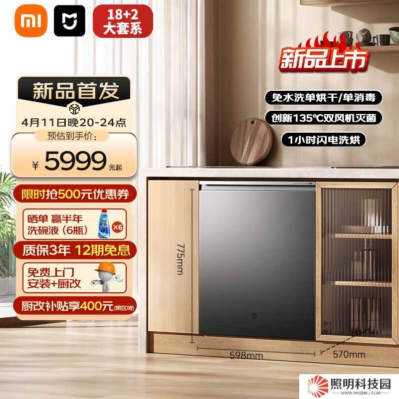 小米米家智能嵌入式洗碗機(jī) P20(18 套)上架:新升級消存一體,5999 元
