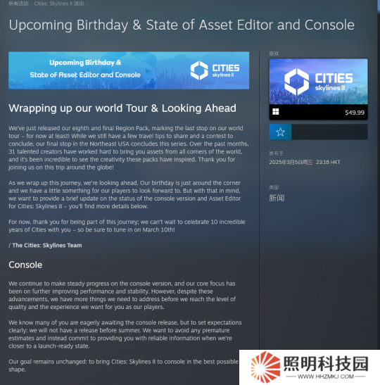 在系列 10 周年紀(jì)念日之際的開發(fā)者更新中,發(fā)行商 Paradox Interactive 透露,《城市:天際線2》的 Xbox Series 和 PS5 主機版本還要等上一段時間。