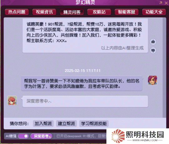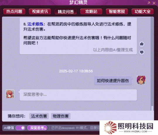 DeepSeek以超強的深度學習能力和超高精度的中文推理能力,賦予了夢幻精靈深度語義理解與動態(tài)學習的能力。接入DeepSeek后的夢幻精靈,可以構建起包含門派技能、游戲經濟系統(tǒng)、游戲社交生態(tài)等內容的立體認知網絡,玩家可以通過自然對話來咨詢在游戲過程中遇到的一系列復雜問題。
