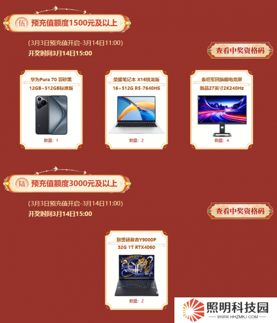 在預(yù)充值階段,累計充值額達到相應(yīng)的額度即可獲得一個抽獎資格碼來參與抽獎活動。如玩家在預(yù)充值開始后至第七階段結(jié)束前,充值超過最大累計充值額度6000元,則可直接獲得7個抽獎碼(最多可獲得七個抽獎碼),以上所有獎勵的中獎碼必會從各階段的資格碼中產(chǎn)生。