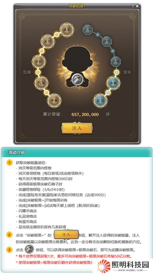 4月1日起至5月13日,參加[突破極限+]挑戰(zhàn)!突破極限+活動(dòng),通過(guò)各種途徑收集 突破能量,累積突破極限分?jǐn)?shù),根據(jù)極限分?jǐn)?shù)打通任脈和督脈,在變強(qiáng)的同時(shí)還能獲得對(duì)應(yīng)的豐厚獎(jiǎng)勵(lì)!
