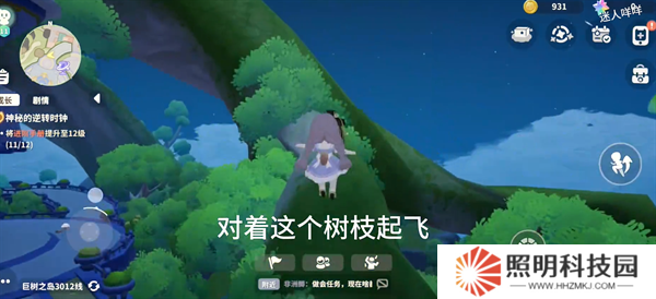 5、接下來朝著背后的樹枝起飛,并沿著樹枝的方向前進,就能夠看到目標。