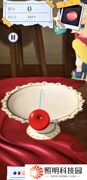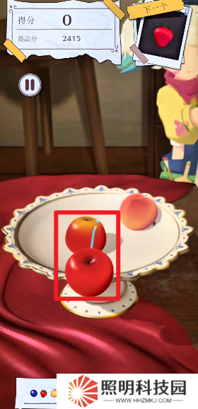 3、當(dāng)自己手中的水果與盤子里面的水果一樣,則可以瞄準(zhǔn)進(jìn)行投擲。