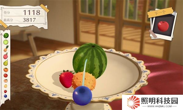 3.挑戰(zhàn)過程之中兩個(gè)相同的水果觸碰到一起才可以消除,以此來合成一個(gè)更大的水果。