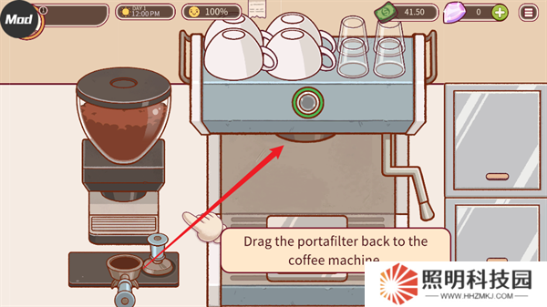 8、然后點擊咖啡機的按鈕,等到下方的進度條移動到綠**域后再次按下你就能夠獲取到一杯完美的咖啡。