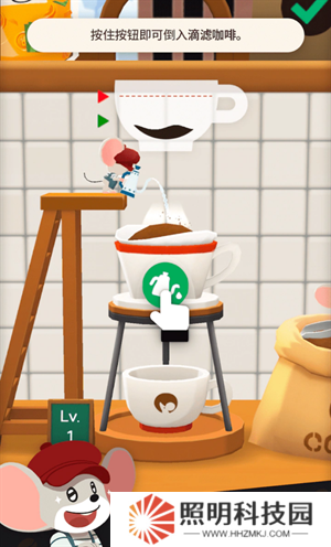 3、然后就會開始制作咖啡的教程,點(diǎn)擊圖標(biāo)進(jìn)行咖啡的制作。