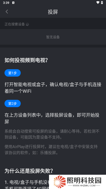 1.電視/盒子與手機沒有連接在同一個WiFi,或者手機可能連接了4G網(wǎng)絡(luò)。