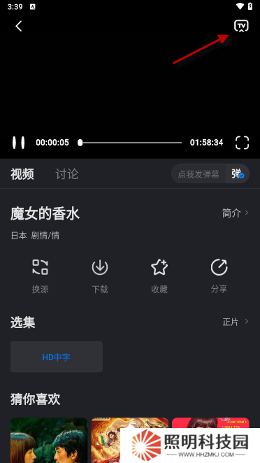 選擇一個你喜歡看的電視,然后點擊右上角的tv就可以投屏了
