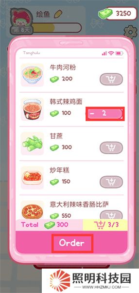 2、接著玩家們?cè)谠邳c(diǎn)餐界面中選擇自己想要的食物加入購物車,點(diǎn)擊Order進(jìn)行購買。