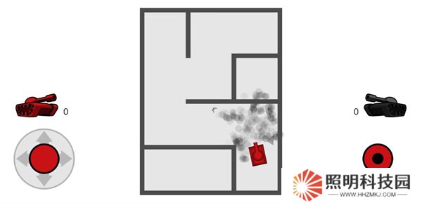 3、進入關卡之后,玩家會與敵人的坦克共處地圖之中,左下角的輪盤進行移動,右下角的按鈕進行射擊,擊中對方就能夠獲得勝利。