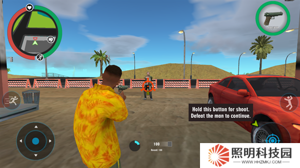 1、玩家們進(jìn)入游戲之后,將會(huì)作為一名黑幫成員開始進(jìn)行行動(dòng)。移動(dòng)左下角的輪盤就能夠控制自己的角色進(jìn)行移動(dòng)。