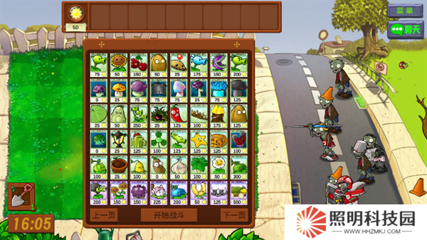 3、進(jìn)入到游戲內(nèi)后,可以在右側(cè)看到關(guān)卡僵尸的類型,玩家們選擇出戰(zhàn)的植物進(jìn)行后點(diǎn)擊開始戰(zhàn)斗。