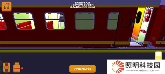 5、右下角相機(jī)可以切換不同視角查看火車的各個(gè)部位,到站可以點(diǎn)擊相機(jī)上方的黃色按鈕打開車門。