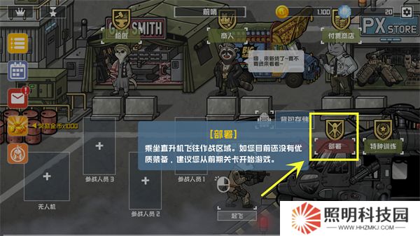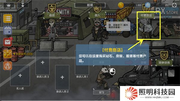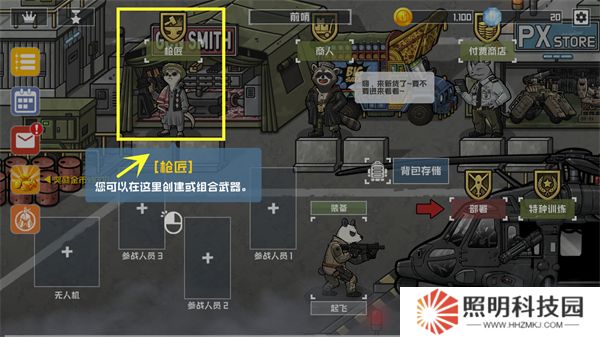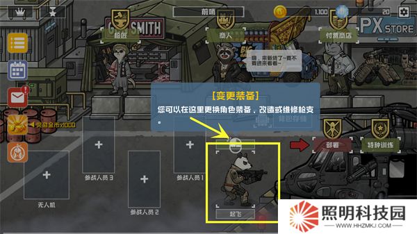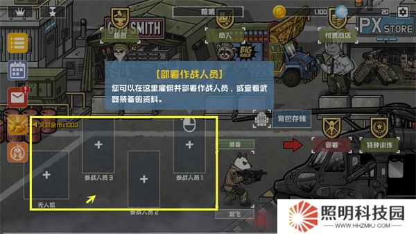 8、點(diǎn)擊左下角的空位,你還將能夠雇傭作戰(zhàn)人員,或者查看武器裝備的資料。