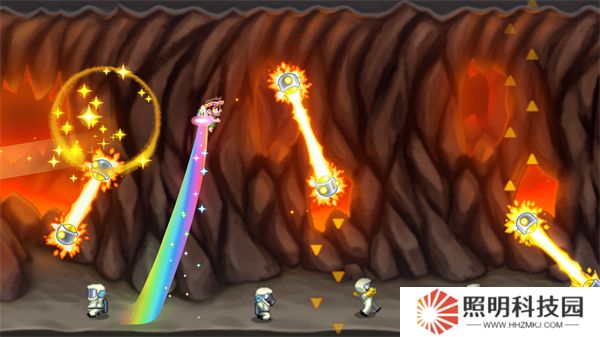 2、其中有各種各樣的道具可以幫助玩家獲得更高的分數(shù),例如磁鐵可以吸引金幣,火箭可以加速等等。