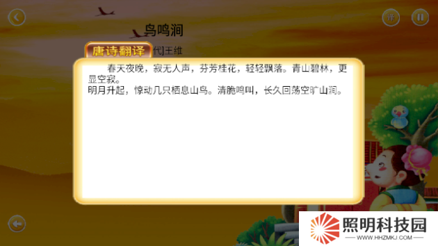 2.動畫呈現(xiàn):軟件通過精美的動畫展現(xiàn)唐詩的內(nèi)容,生動形象,吸引孩子的注意力。
