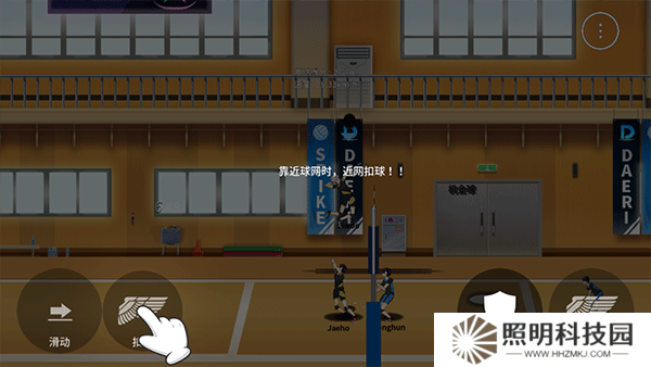 4、如果是近網(wǎng)的球,你還可以選擇使用扣球的按鈕將其打回。