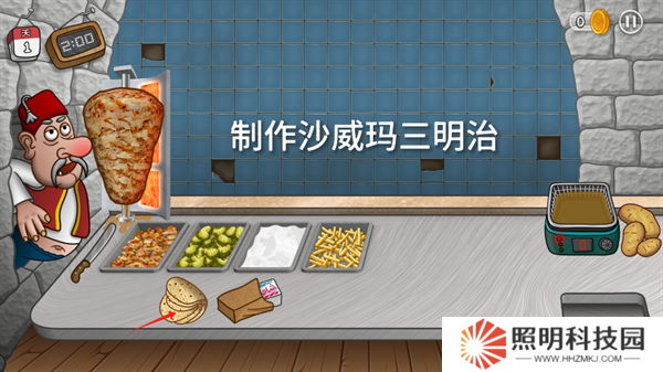 2、游玩的過(guò)程中玩家們可以自由的使用食材和材料進(jìn)行制作,制作出獨(dú)特美味的沙威瑪卷餅。