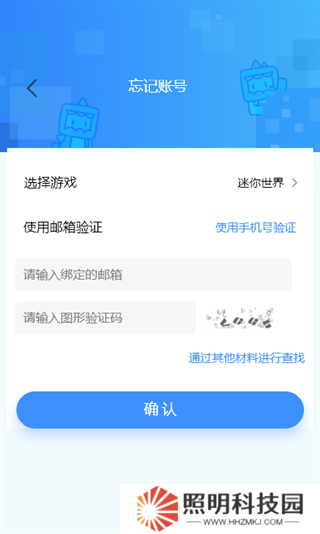 4、忘記賬號(hào)的話,你需要點(diǎn)擊后先選擇迷你世界游戲,要是記得迷你號(hào)所綁定的手機(jī)號(hào)碼,可以輸入手機(jī)號(hào)后再輸入驗(yàn)證碼并點(diǎn)擊確認(rèn)。