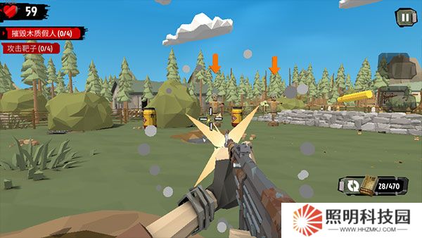 1.開始游玩之后會面對從四面八方涌來的無數(shù)僵尸,需要拖動屏幕瞄準不同的目標進行快速射擊。