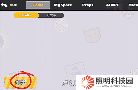 2、然后在游戲工作室的界面的左下角點擊創(chuàng)建。