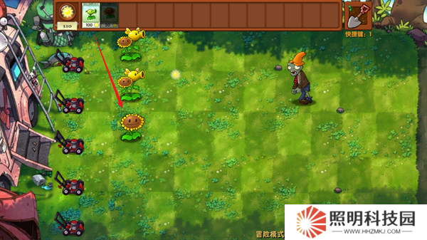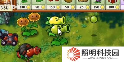 4、在另一株豌豆射手上種植櫻桃炸彈,讓其成為櫻桃射手。