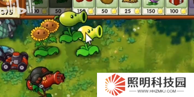 1、玩家們首先需要在豌豆射手上面種植另一株豌豆射手,讓其融合成雙發(fā)射手。