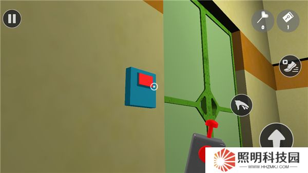 5、控制角色走到門口,可以發(fā)現(xiàn)是關(guān)門的,走到開關(guān)鍵處就會(huì)出現(xiàn)拾取鍵,點(diǎn)擊即可開門。