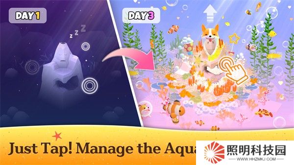 2、點擊屏幕就能夠在場景當中創(chuàng)造珊瑚,吸引來造型各異的深海魚群讓場景更加豐富。