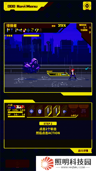3、點(diǎn)擊2個(gè)斬?fù)魪?qiáng)化,然后點(diǎn)擊ACTION就能夠展開(kāi)自己的戰(zhàn)斗攻勢(shì)。