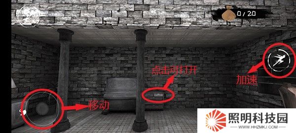 2、進入游戲之后,左邊輪盤可以控制人物移動,點擊游戲場景內(nèi)的箱子之類,以此尋找錢袋及線索。