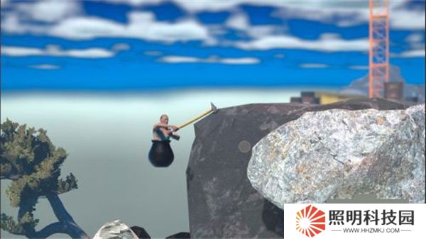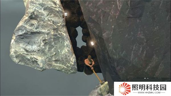 6.將錘頭對準石頭方向,利用推力彈向右邊平臺。