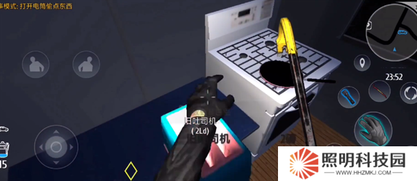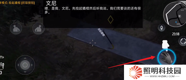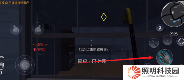 4、玩家們可以進(jìn)行操控之后,就能夠點擊右下角的互動按鈕來撿起撬棍。