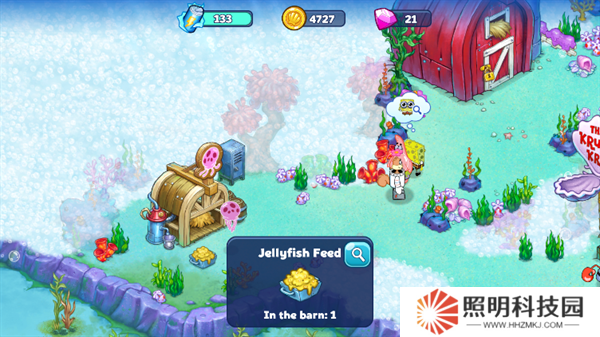 2、進入到場景內(nèi)后玩家們制作出喂食水母的食物。