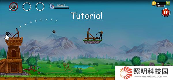 4、通過滑動(dòng)屏幕來控制彈弓和選擇的張力,精確計(jì)算投擲石塊的角度進(jìn)行發(fā)射。