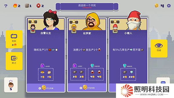 4、每一個(gè)新回合都能夠讓一名成員加入到自己的城市當(dāng)中,他們會(huì)帶來(lái)不同的收益。