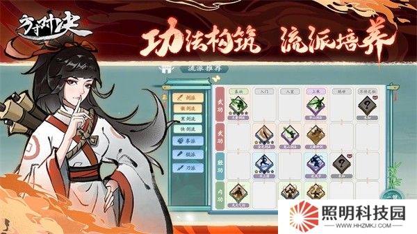 6、可攜帶四門功法(兩武功,一輕功,一內(nèi)功),四個(gè)裝備(武器,頭盔,衣服,鞋),一只寵物,共計(jì)25張牌。