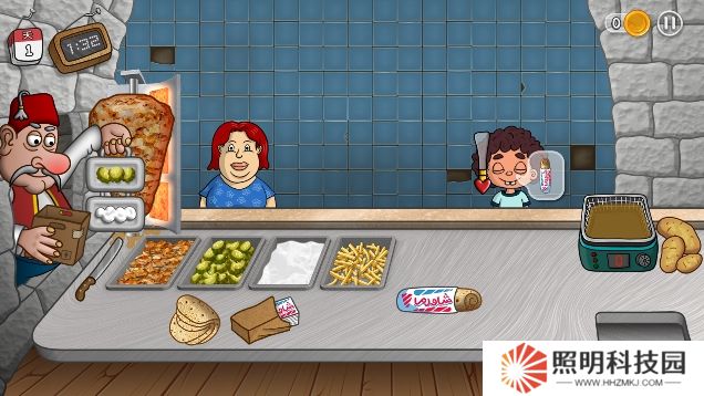 5、接著店鋪里會(huì)出現(xiàn)各種顧客,他們旁邊會(huì)顯示自己的沙威瑪三明治的需求,你將卷餅制作完就能迎接顧客啦。