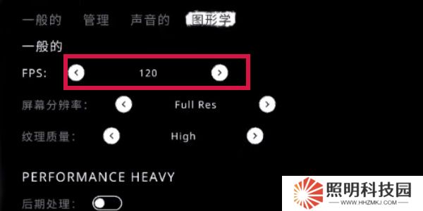 5.在【圖形學(xué)】中的【FPS】中選擇【120】。